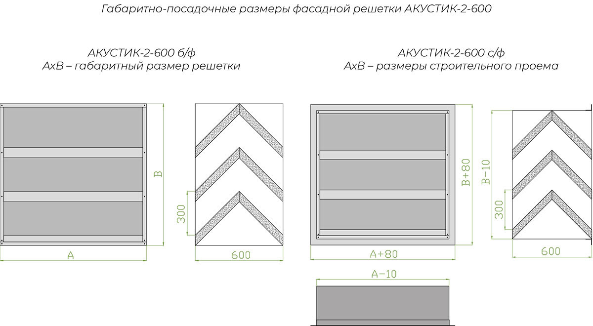 АКУСТИК - шумопоглощающая наружная решетка, предупреждающая проникание шума из окружающей среды в здание через приточные или вытяжные отверстия и наоборот. Решетка Акустик 2-600 имеет двусторонние жалюзи глубиной 600 мм.
