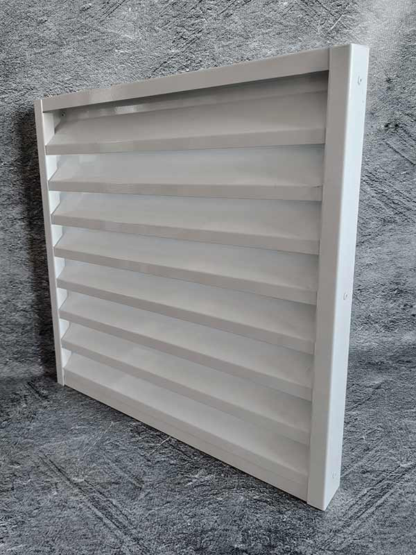 Решетка ВРН-НС полностью изготовлена из листового оцинкованного металлопроката толщиной 0,8 мм и окрашены порошковой краской в цвет по шкале RAL. По умолчанию решетки окрашиваются в стандартный белый цвет RAL 9016, по желанию возможна окраска в любой цвет по шкале RAL.