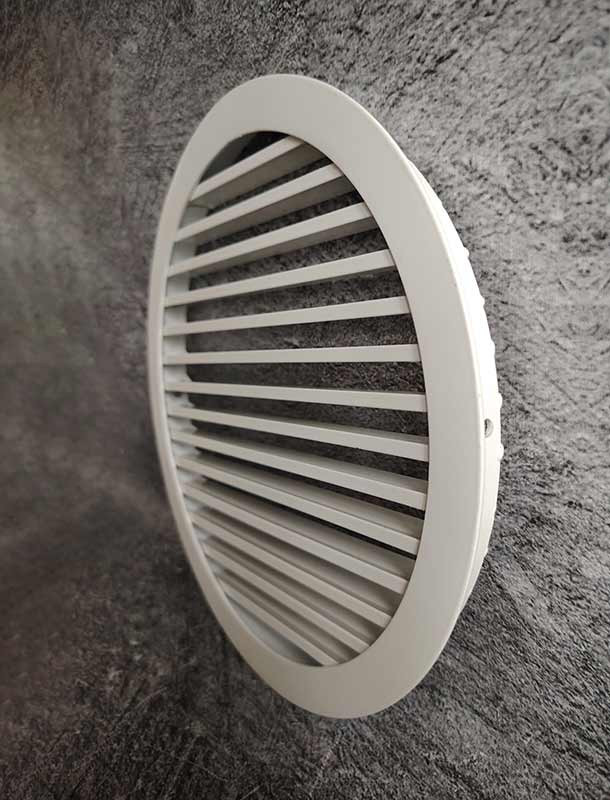 Решетки данного вида включают в себя изделия стандартных типоразмеров, а также возможно изготовление любых размеров с шагом 1 мм. Минимальный рекомендуемый диаметр – 150 мм, максимальный рекомендуемый диаметр – 600 мм. Если диаметр решетки превышает 250 мм, устанавливается Г-образная перемычка во избежании провисания жалюзи.