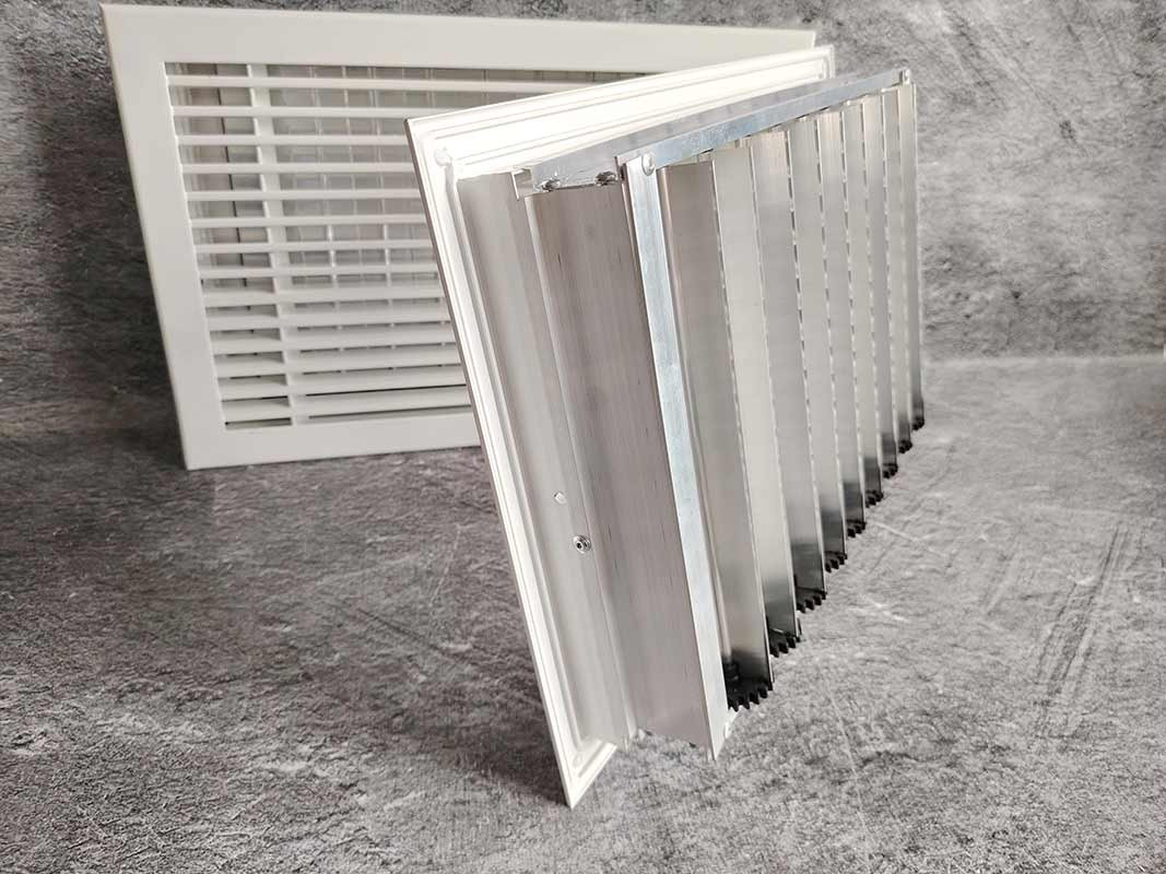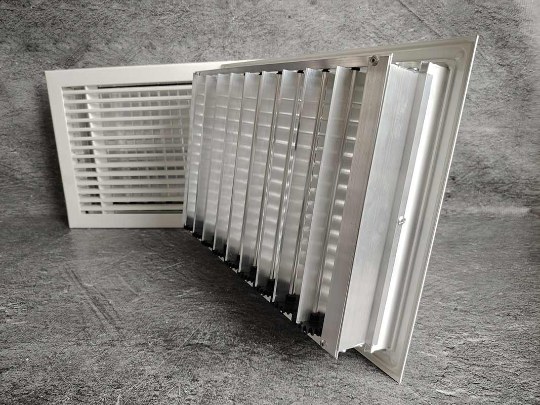 С тыльной части решетки установлен клапан расхода воздуха (КРВ). КРВ представляет собой рамку с установленными в неё лопатками. Положение лопаток регулируется при помощи ручки. Изменение положения лопаток позволяет изменять площадь свободного сечения решетки, тем самым регулируя объем подаваемого воздуха.
